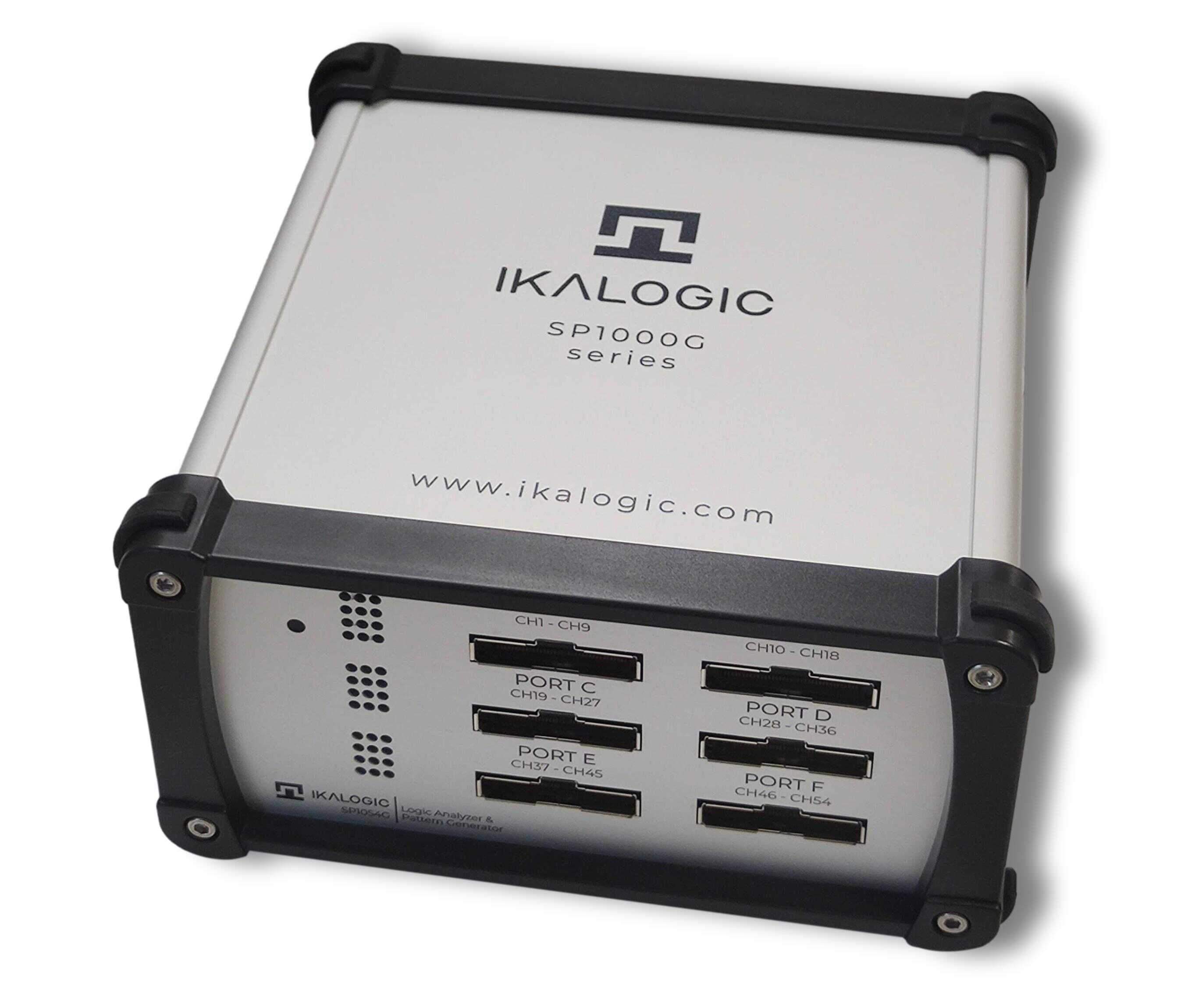 18, 36 and 54 channels 1 GSPS logic analyzer, protocol decoder and pattern generatorSP1000G series logic analyzers and arbitrary pattern generators offer in depth analysis of logic signals and protocols with 1GSPS (1ns) timing resolution. External reference clocking (IN and OUT), trigger input and output as well as adjustable threshold and output voltage level make SP1000G series a uniquely powerful laboratory equipment.